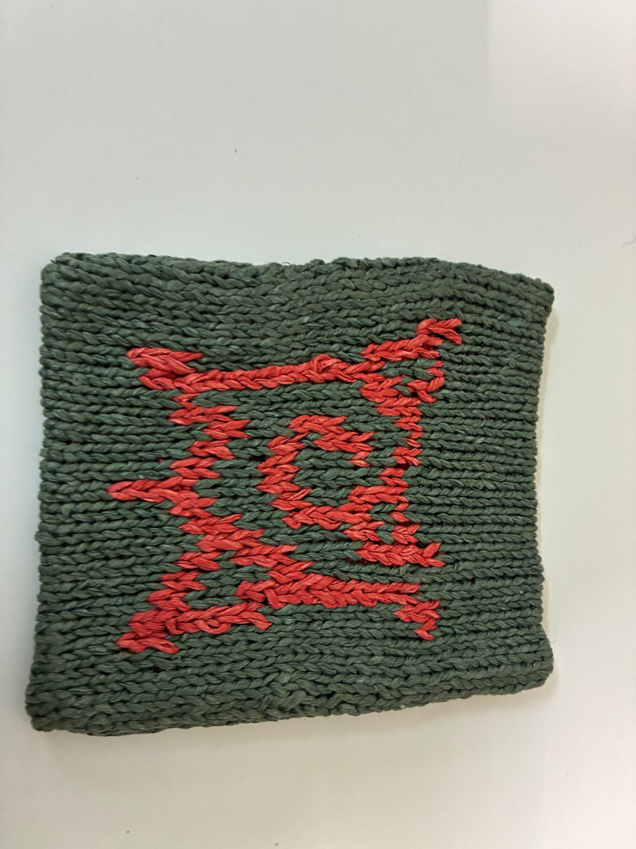 T112:コースター/津田命子デザインアイヌ文様編み込みハンドメイドコースター color:緑