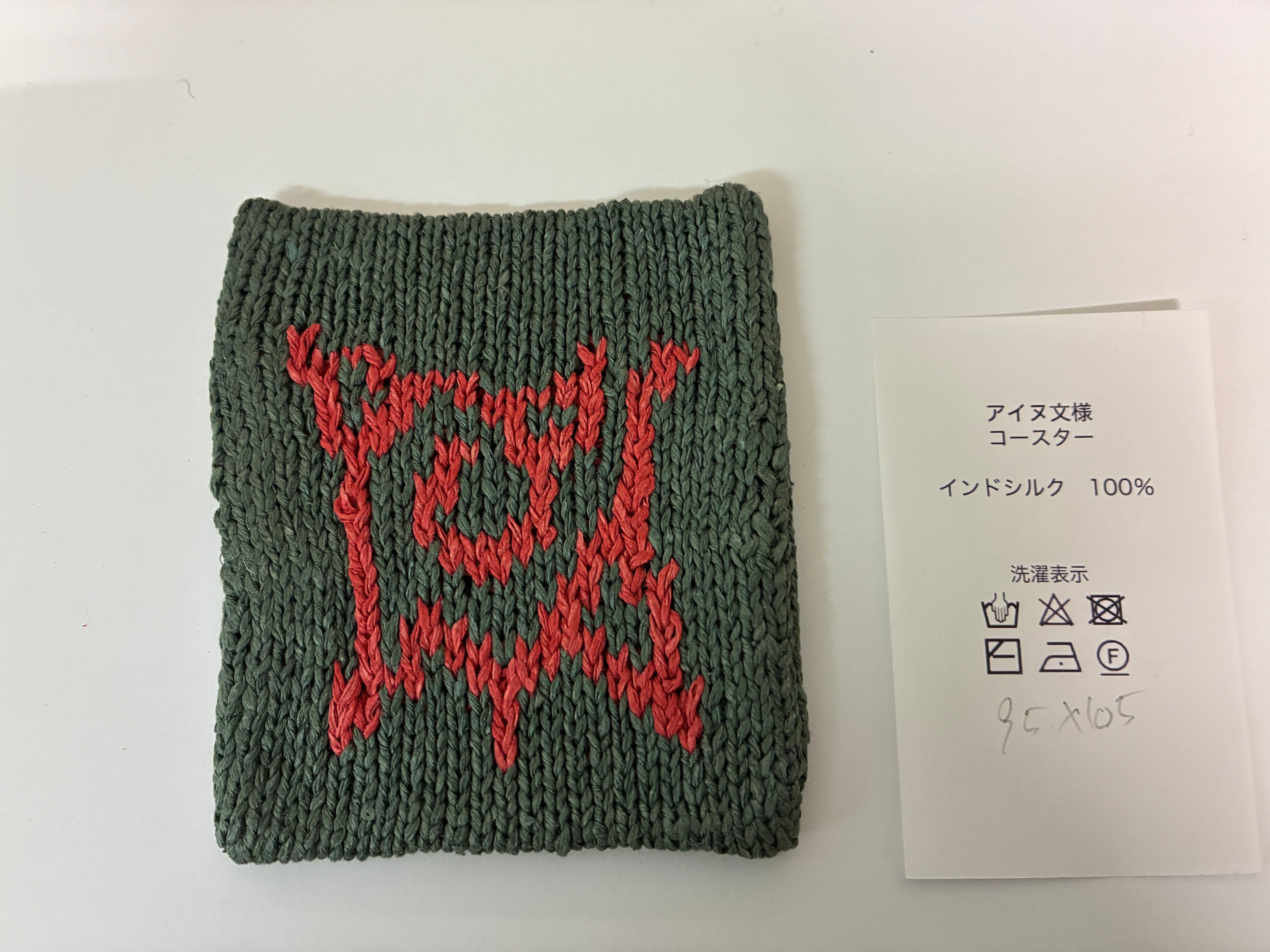 アイヌ服飾研究家 津田命子さんデザインのアイヌ文様を編み込んだコースターです。