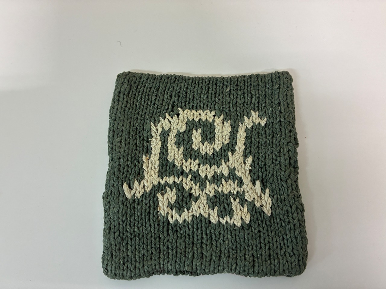 T117:コースター/津田命子デザインアイヌ文様編み込みハンドメイドコースター color:緑