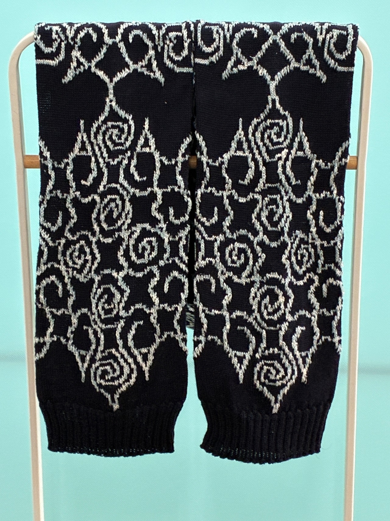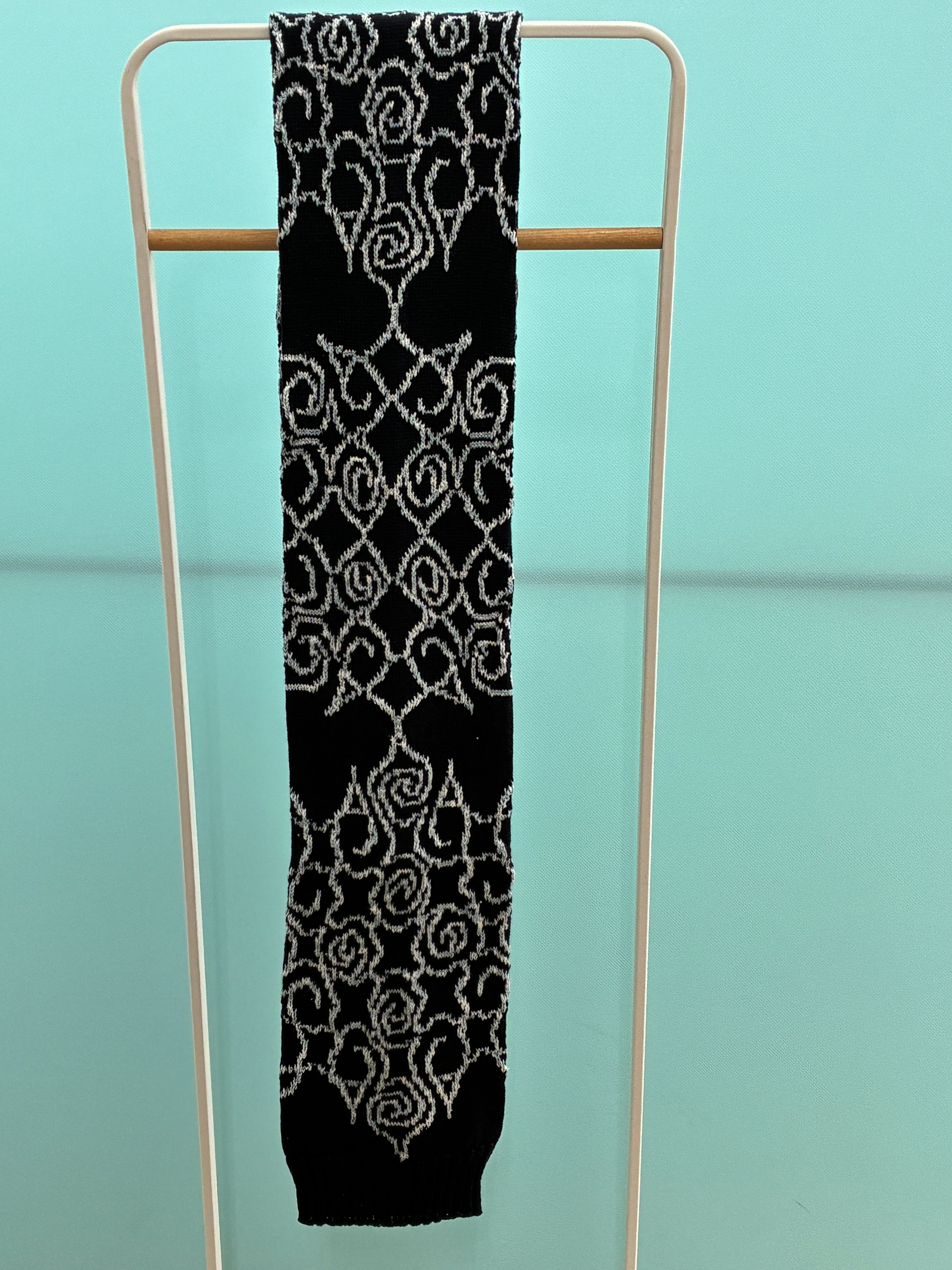 T138細長マフラー(ウール・シルク)/津田命子デザインアイヌ文様編み込みマフラー
