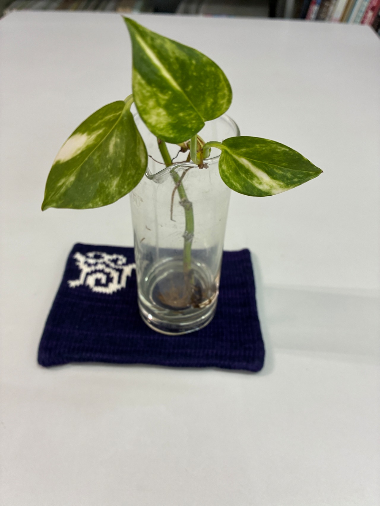 T140:コースター/津田命子デザインアイヌ文様編み込みハンドメイドコースター color:紺