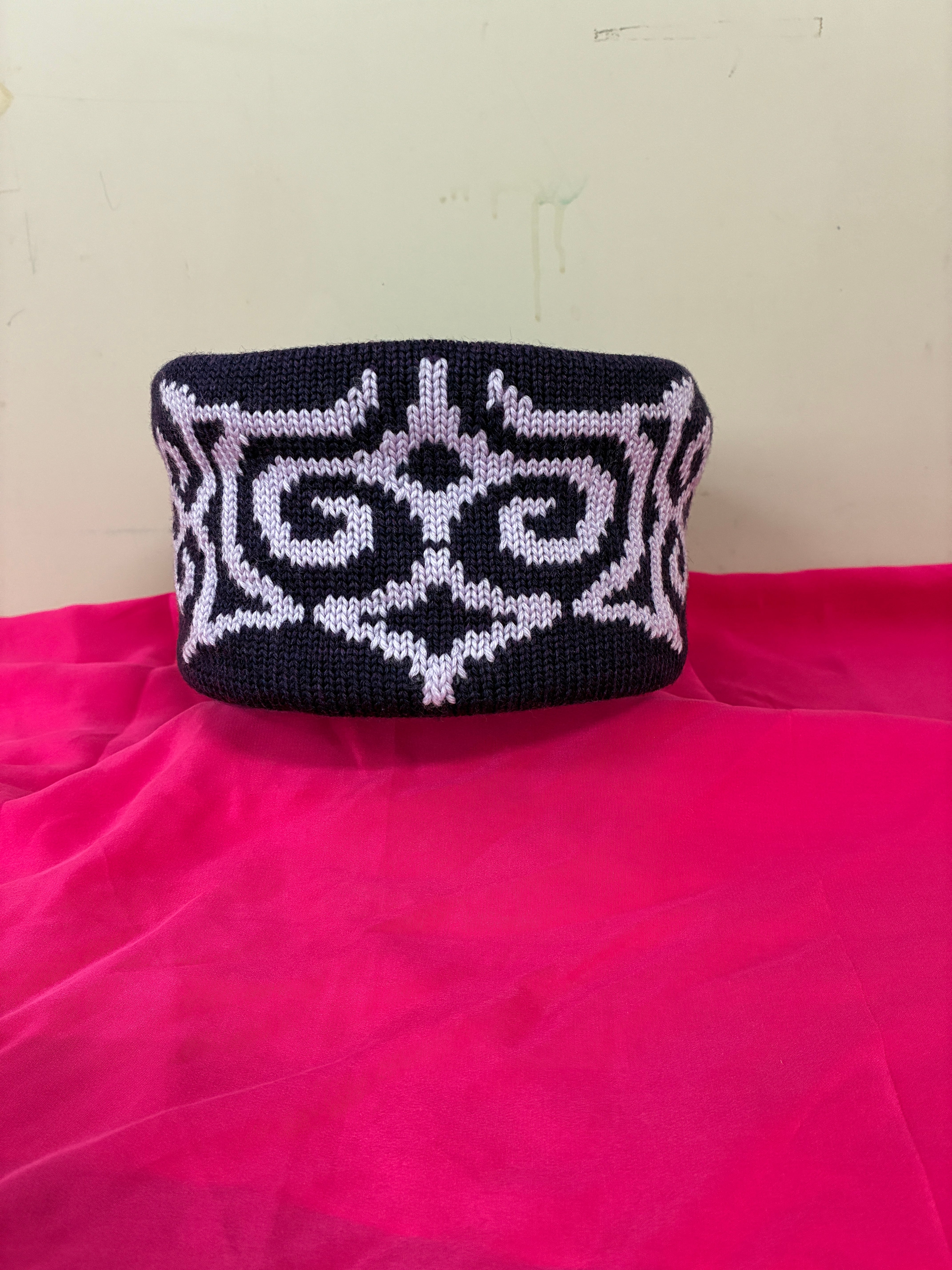 T141:イヤーウォーマー(M)/津田命子デザインアイヌ文様編み込みイヤーウォーマー