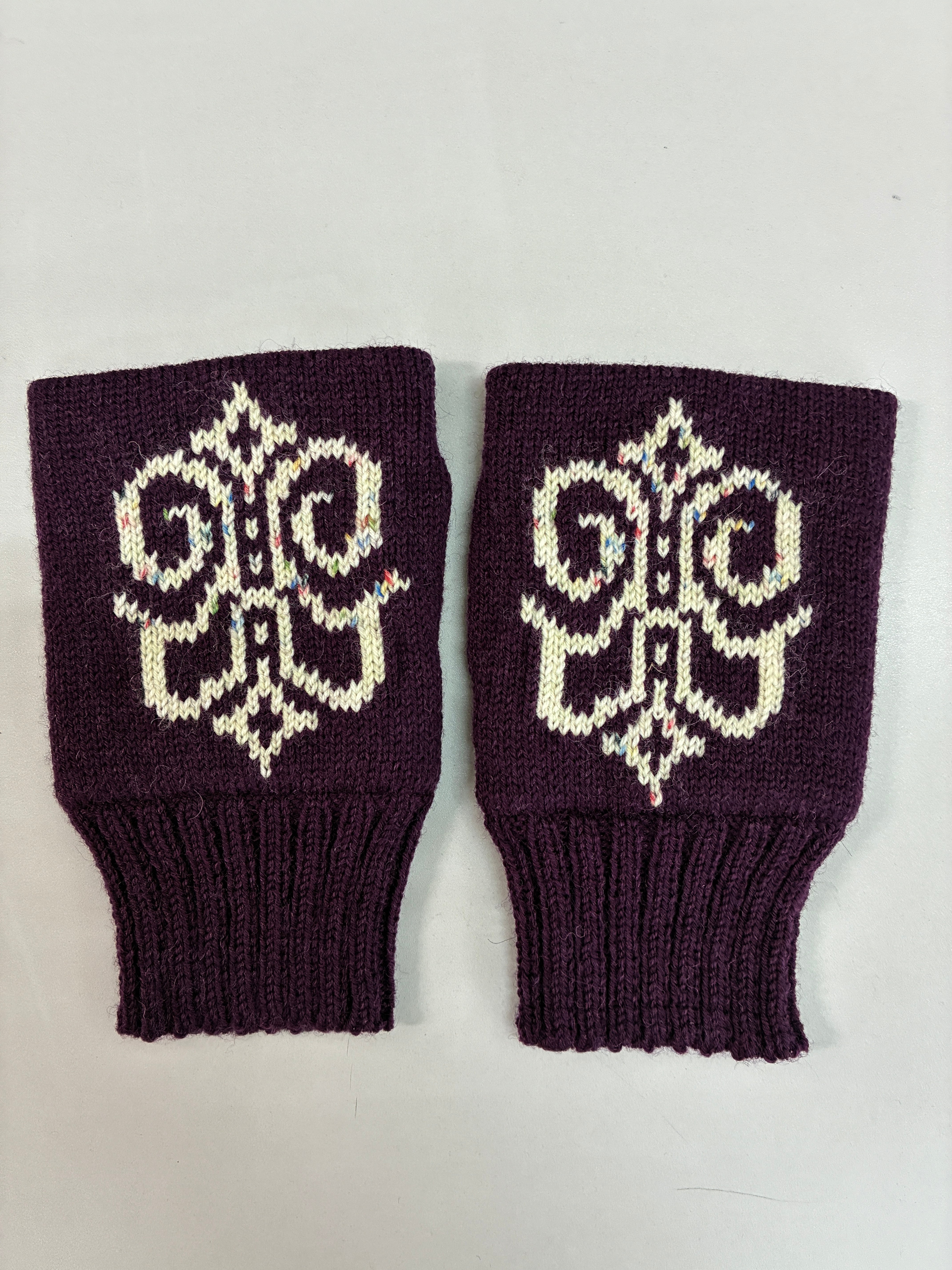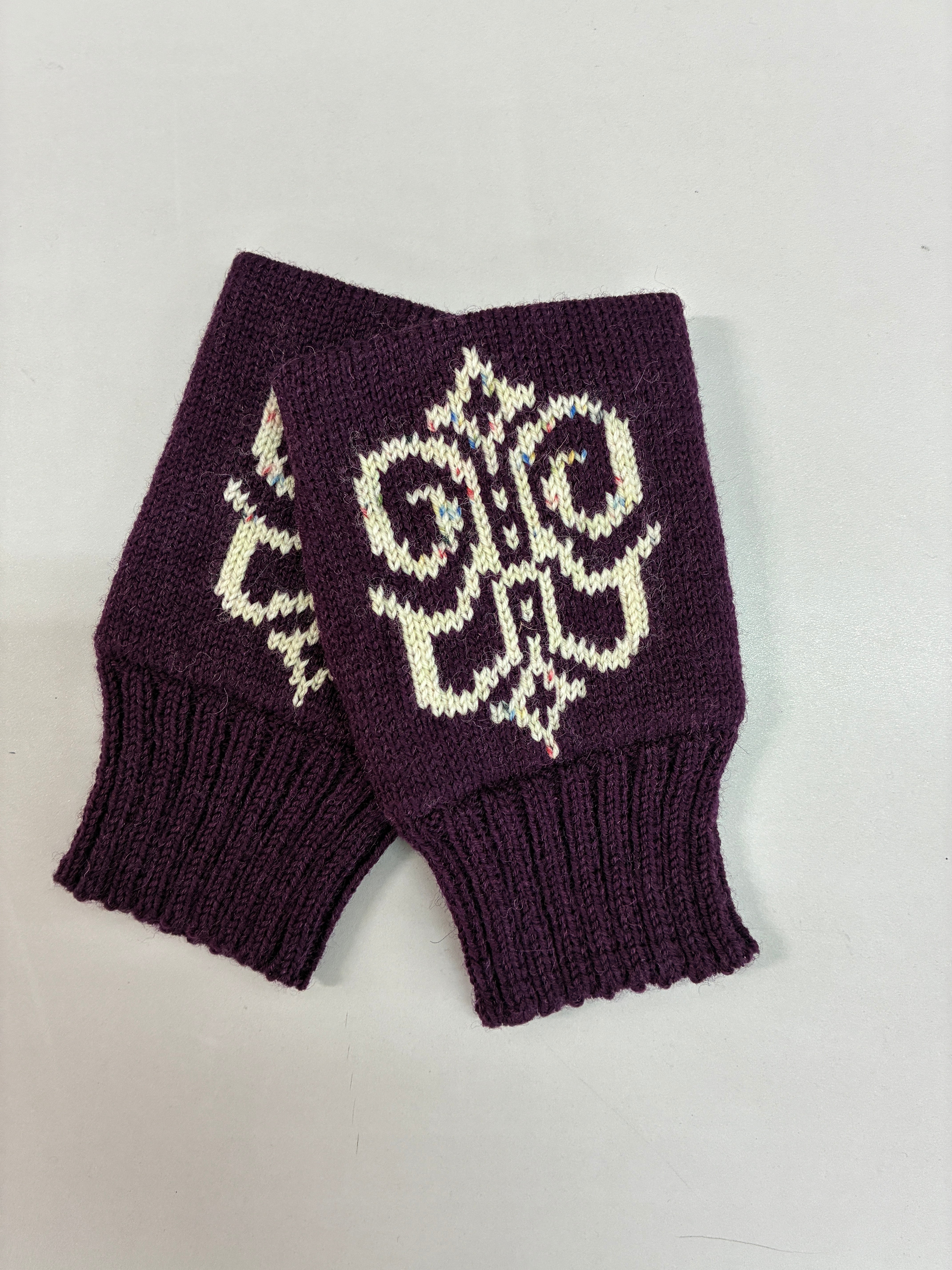 アイヌ服飾研究家 津田命子さんデザインのアイヌ文様を編み込んだハンドウォーマーです。