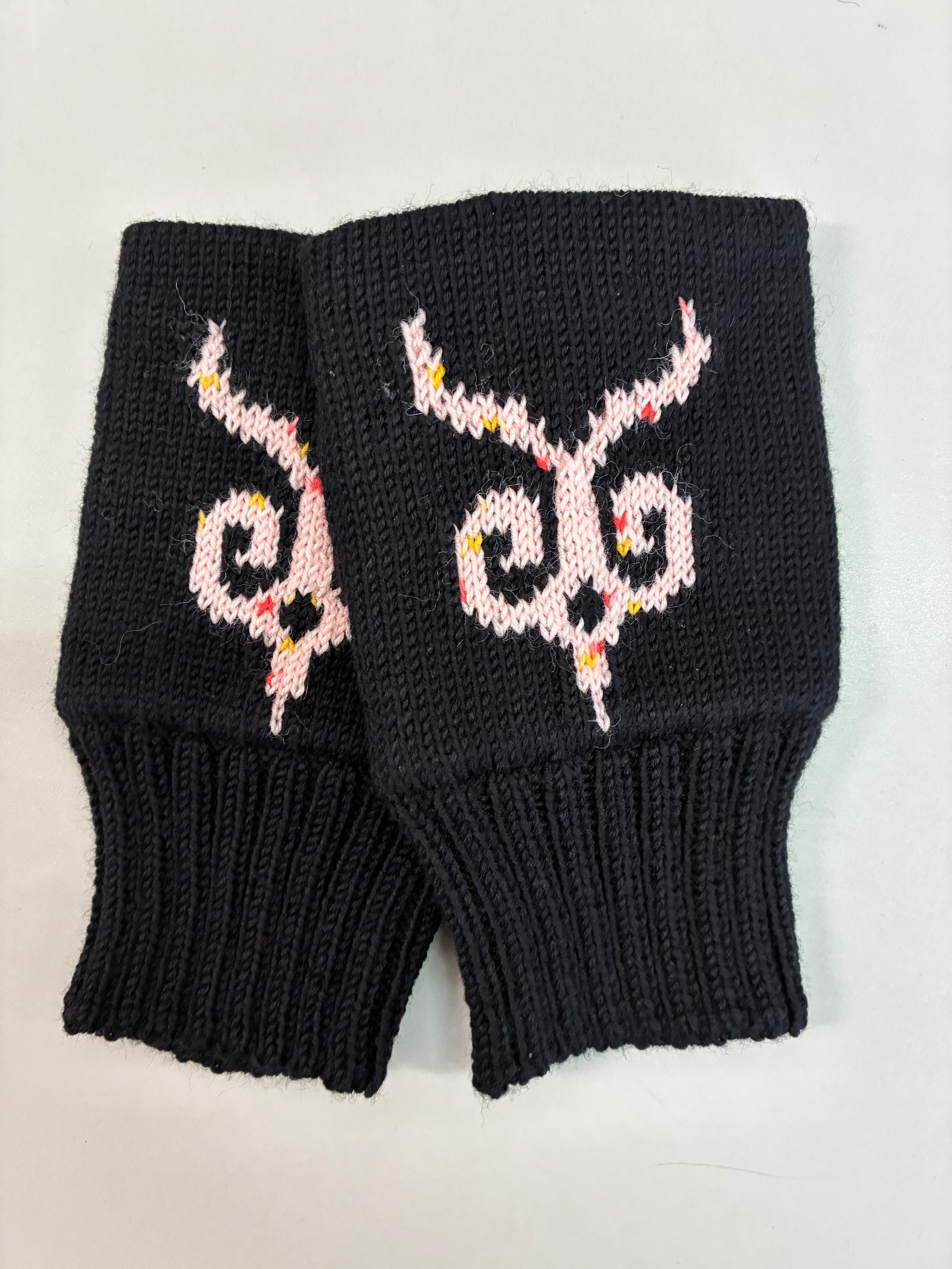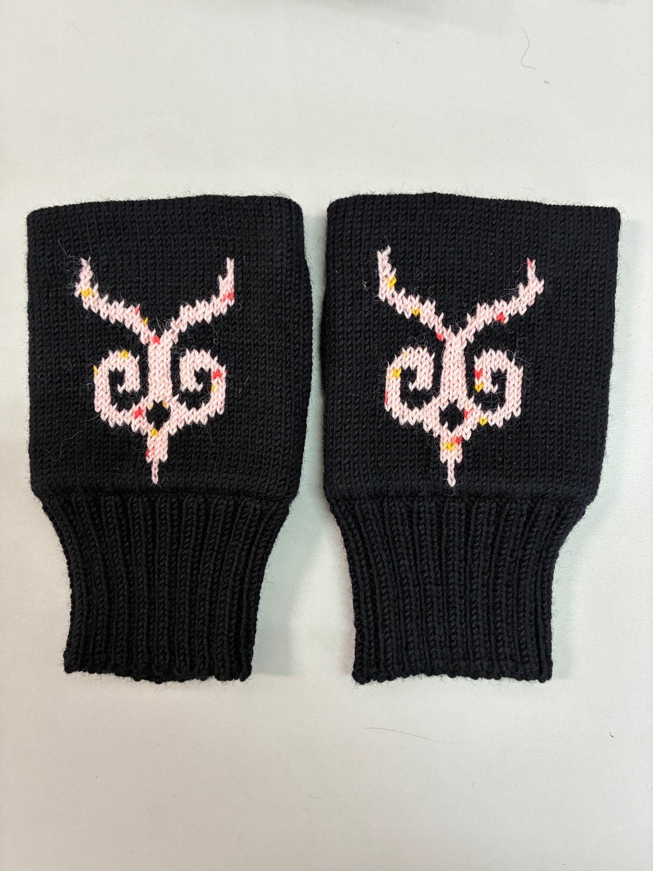 アイヌ服飾研究家 津田命子さんデザインのアイヌ文様を編み込んだハンドウォーマーです。