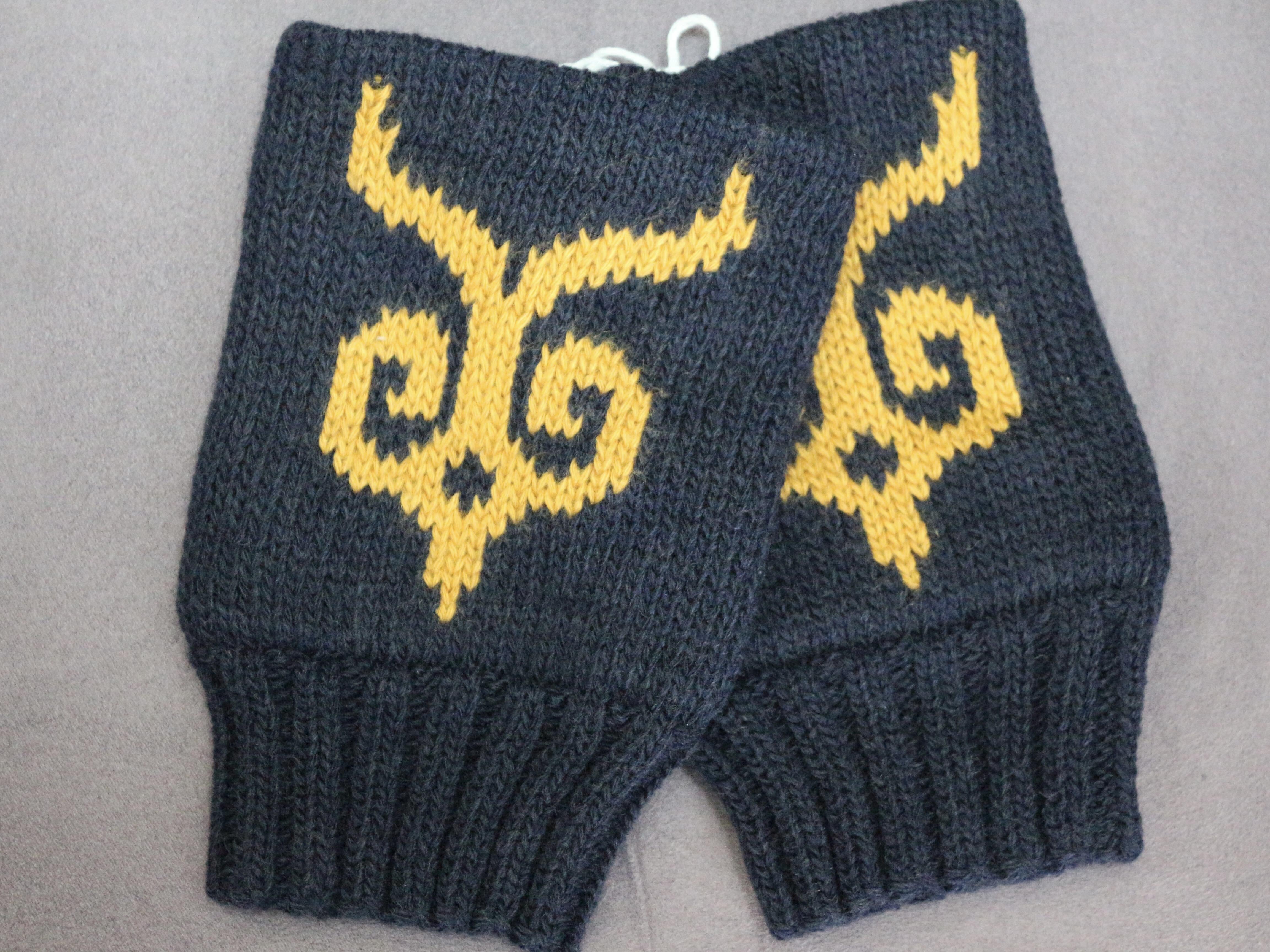 アイヌ服飾研究家 津田命子さんデザインのアイヌ文様を編み込んだハンドウォーマーです。