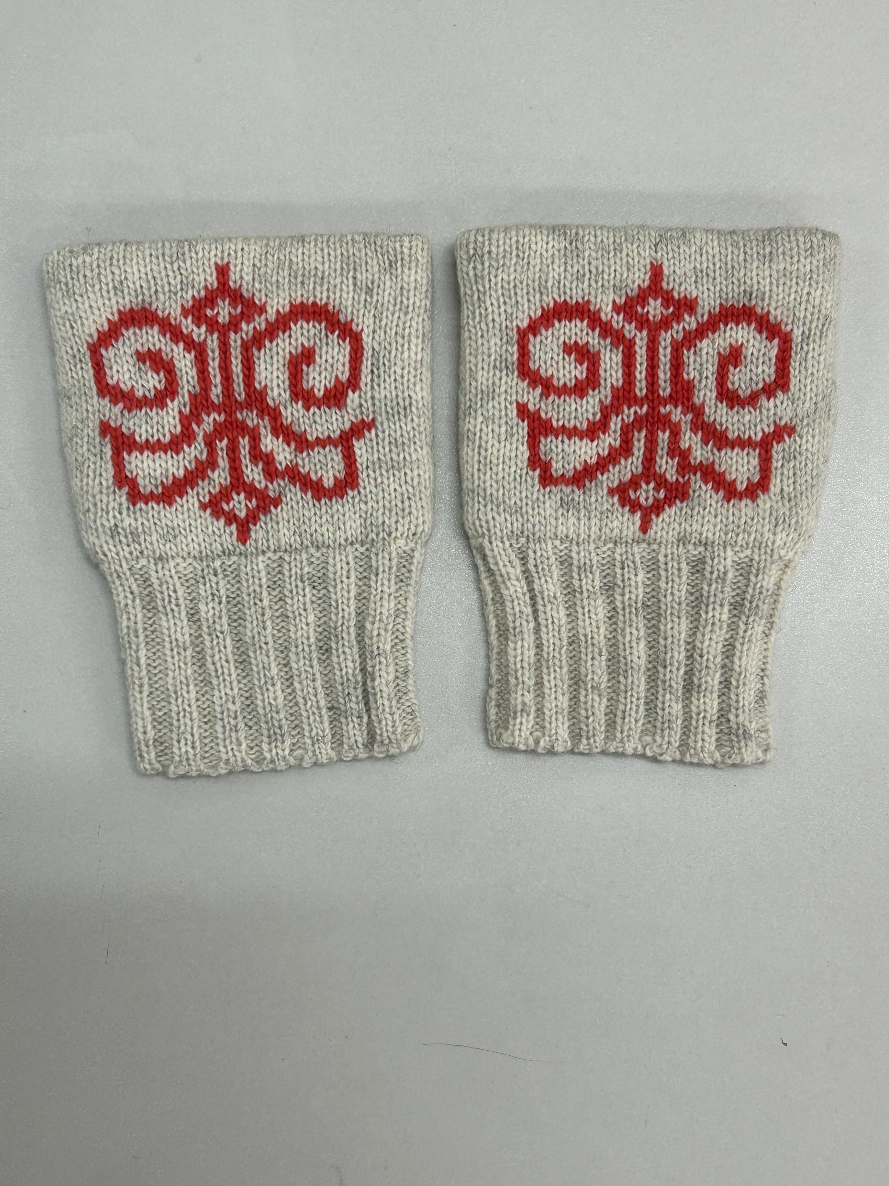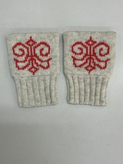 アイヌ服飾研究家 津田命子さんデザインのアイヌ文様を編み込んだハンドウォーマーです。